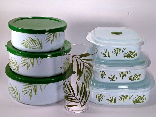 - 6 piece microwave set, storage set, microwave safe made of BPA free material, used to store food in your refrigerator or freezer, has 3 lids that are airtight and includes an adjustable vent on top of each lid, will match all your Corelle Bamboo Leaf cookware, Product dimensions 8.8 x 7.8 x 2 inches