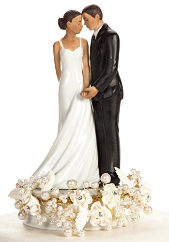 Product Highlight Rose and Pearls Elegant African American Cake Topper (Silver or Gold): Base Color: SILVER WIRING